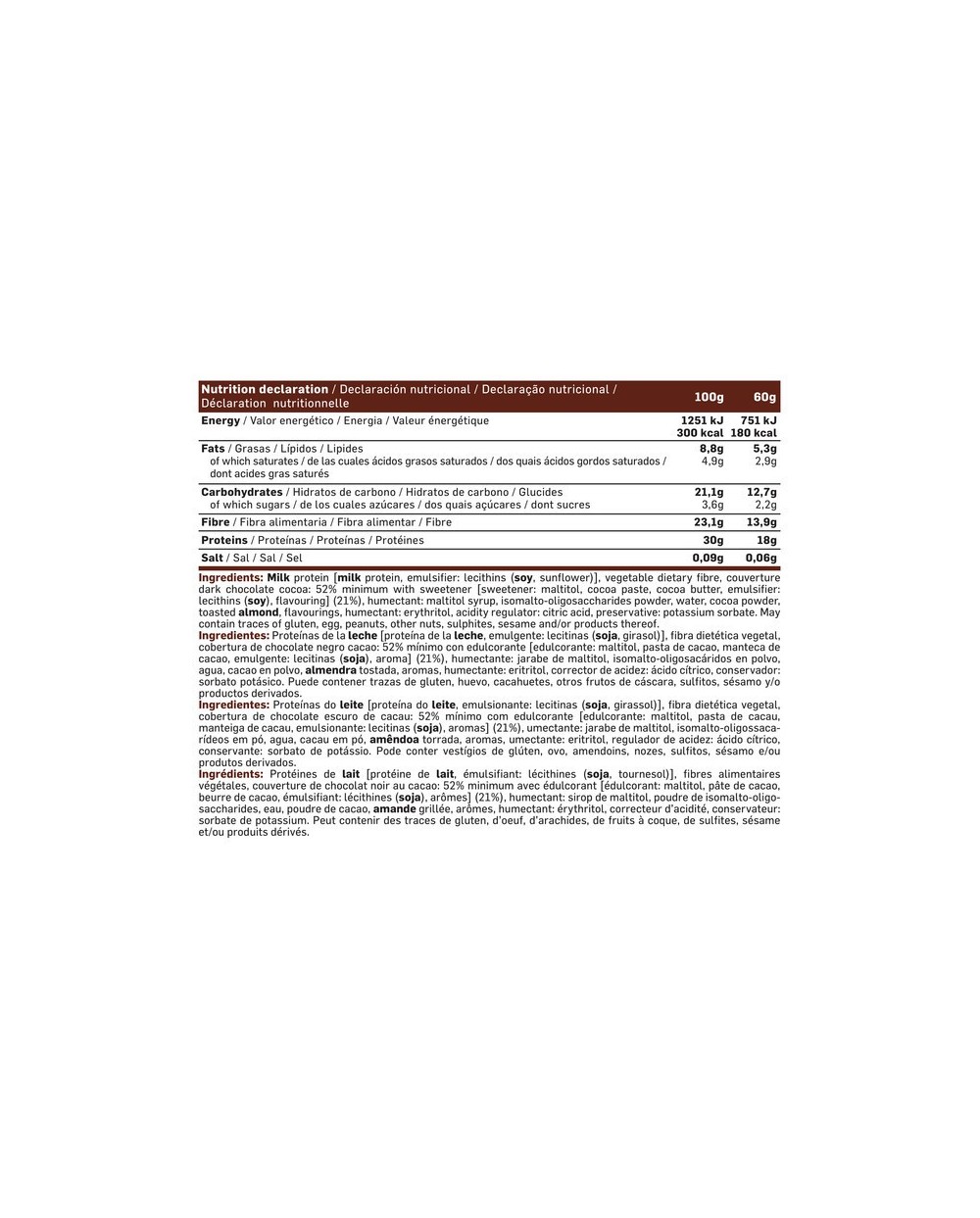 Bajo contenido en azúcares y grasas.